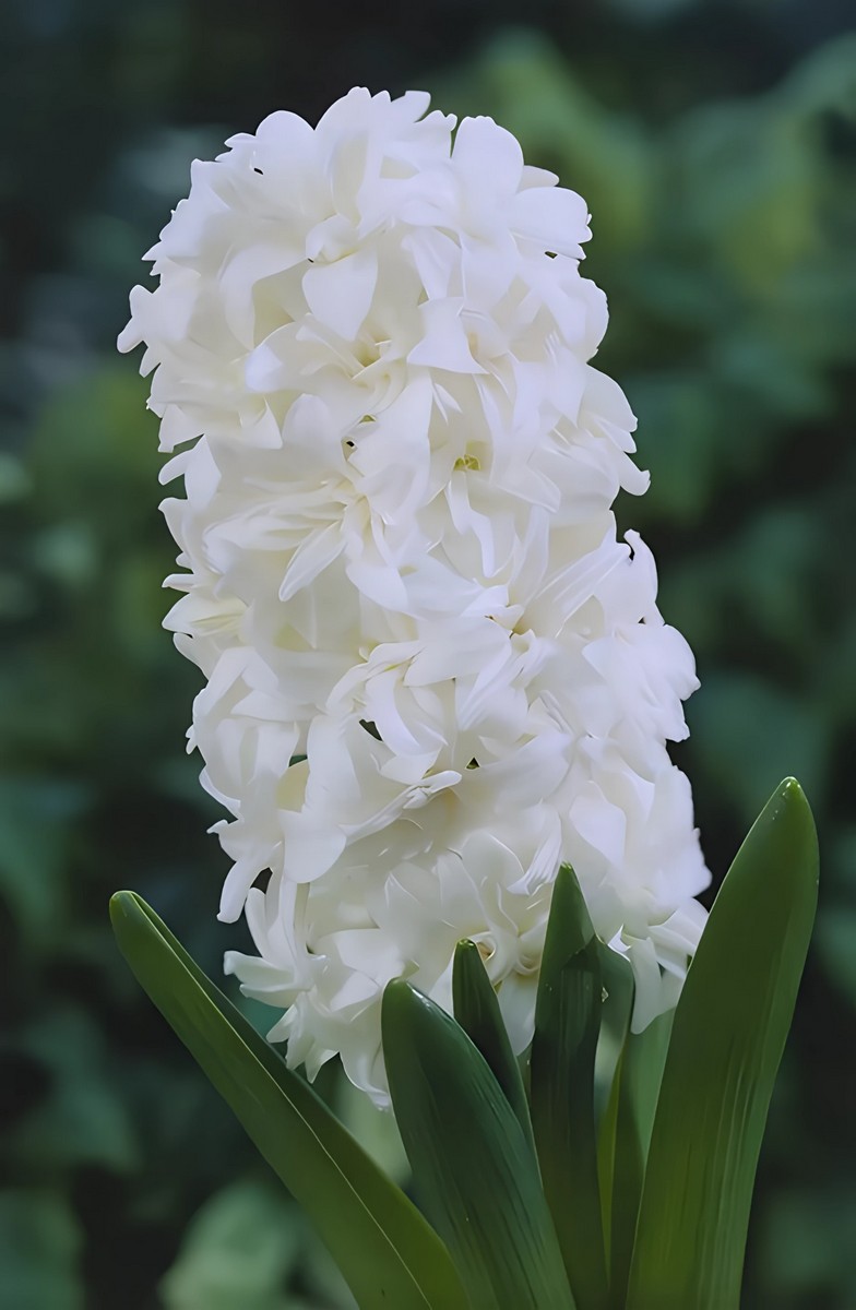 Махровый гиацинт Сноу Кристал - истинное белоснежное очарование. Зацветает несколько позднее своих собратьев по виду. Цветы очень элегантные – многочисленные лепестки окутывают соцветия, превращая его в светлое облачко. Листья имеют линейную форму, узкие, темно-зеленые. В высоту растение может вырастать до 25 см. Диаметр цветочков составляет 3,5 – 4 см. Цветоносы от самого клубня лишены листьев, а розетка листков располагается вокруг стрелы, увенчанной цилиндрической головкой. Каждый пышный цветочек состоит из нескольких наложенных друг на друга плоских звёздочек. В некоторых цветках выглядывают чуть желтоватые сердцевинки, но чаще на их месте распушилась самая маленькая звёздочка. Высота цилиндрического соцветия — до 12–15 см. Крупные, пышные, белоснежные, с насыщенным приятным ароматом. Период цветения: апрель – май. Гиацинт Сноу Кристал выращивают в выгонке, в горшках и на бордюрах. Культивируется для декоративного оформления и на срезку. Пользуется огромной популярностью.