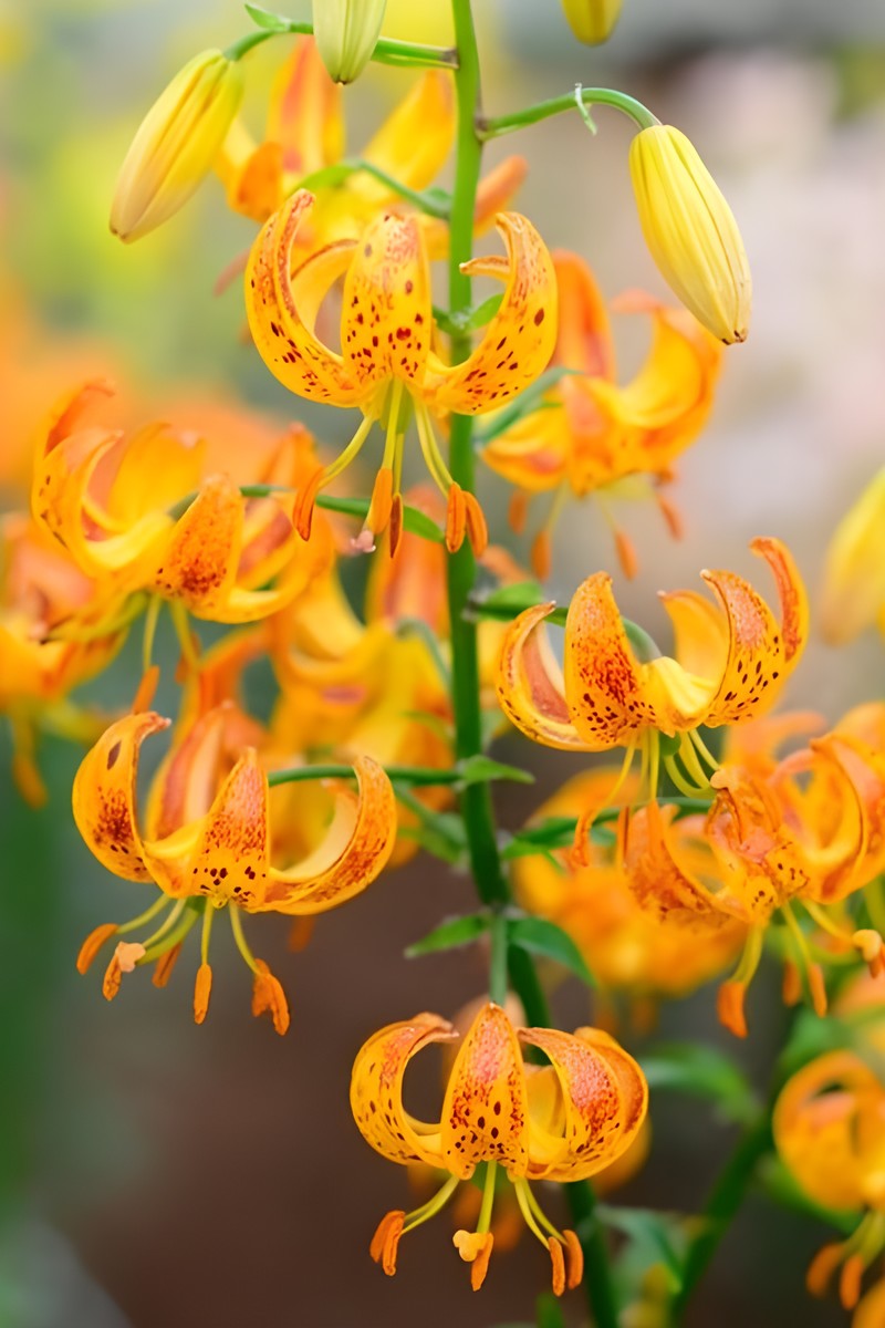 Лилия Санни Морнинг кудреватая это самая морозостойкая группа, ведь их исходный вид — лилия мартагон — встречается даже в суровом сибирском климате. Ареал ее простирается практически по всей Евразии и до самого Дальнего Востока. Такое широкое распространение этого вида говорит о его необычайной выносливости и абсолютной неприхотливости. Мартагон-гибриды декоративны, отличаются разнообразной окраской, многоцветковостью (от 30 до 50 цветков), сладким ароматом и изяществом формы цветков, похожей на чалму (турецкий головной убор). Растения, как правило мощные, обладают устойчивостью к грибным и вирусным болезням и долговечностью луковицы (до 30 и более лет). Куст у лилии Санни Морнинг может достигать 90 см. Цветки не крупные диаметром до 10 см. Цвет лепестков оранжево-красный с контрастным напылением. Цветение продолжается с июля по август.