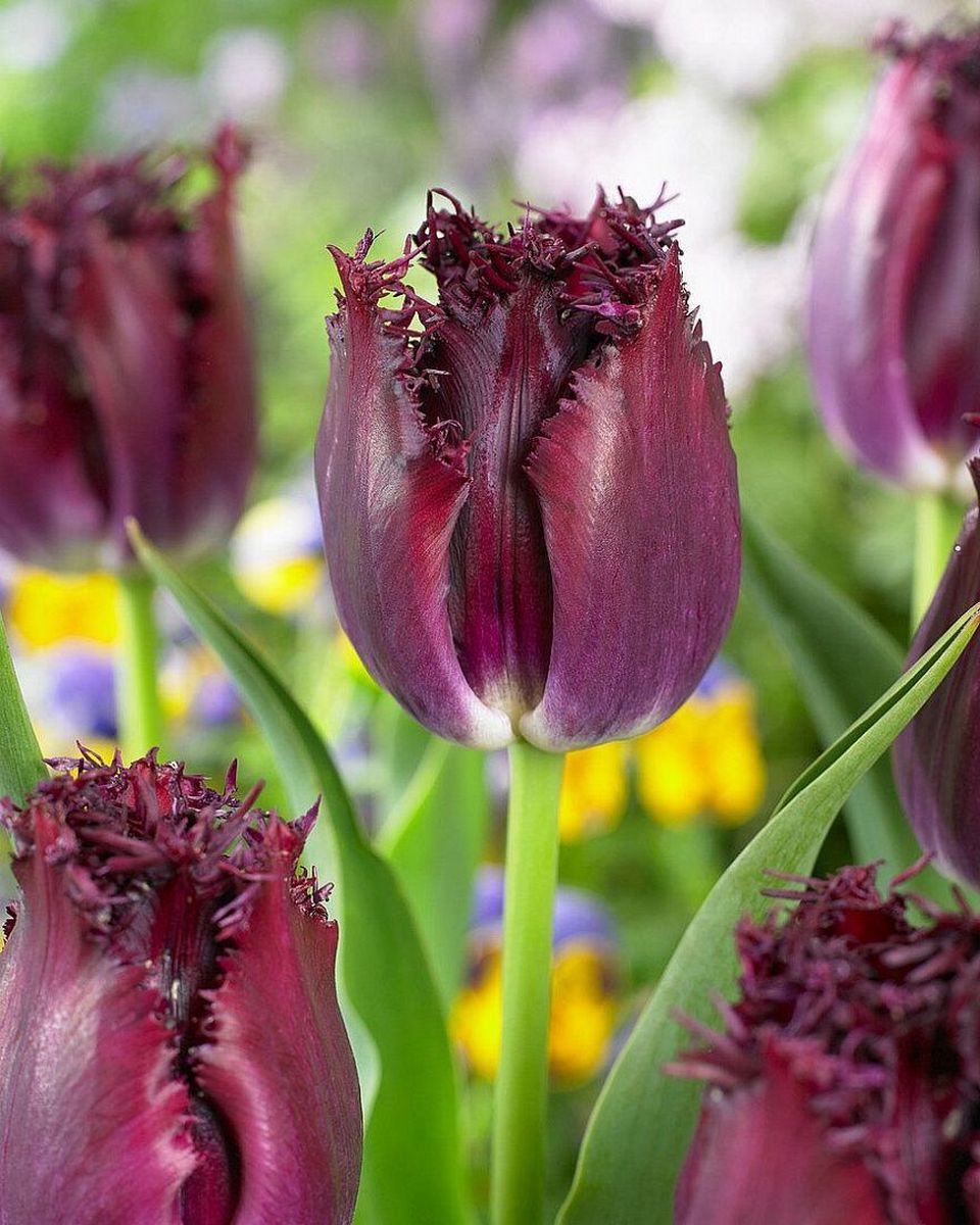Тюльпан бахромчатый Бульдог - луковичный многолетник. Цвет пурпурный с декоративными зубчатыми краями. Высота 45–50 см. Форма цветка бокаловидная, крупная. Бахрома густая, длинная. Подходит для выращивания в цветниках, горшках и на клумбах, а также для срезки. Тюльпан Бульдог хорошо смотрится в групповых посадках и миксбордерах.