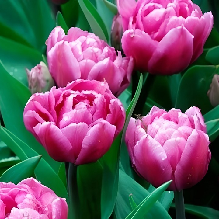 Тюльпан махровый ранний Диор - сорт, выведенный в Нидерландах. Относится к классу махровые ранние. Окраска: ярко-розовый или насыщенно-малиновый. Высота растения: 40–50 см. Цветки: полусферические, пионовидные, диаметром 8–10 см. Лепестки: плотные и многочисленные, что придаёт цветку объёмный вид. Сорт подходит для украшения клумб, выгонки, выращивания в горшках и на срезку.