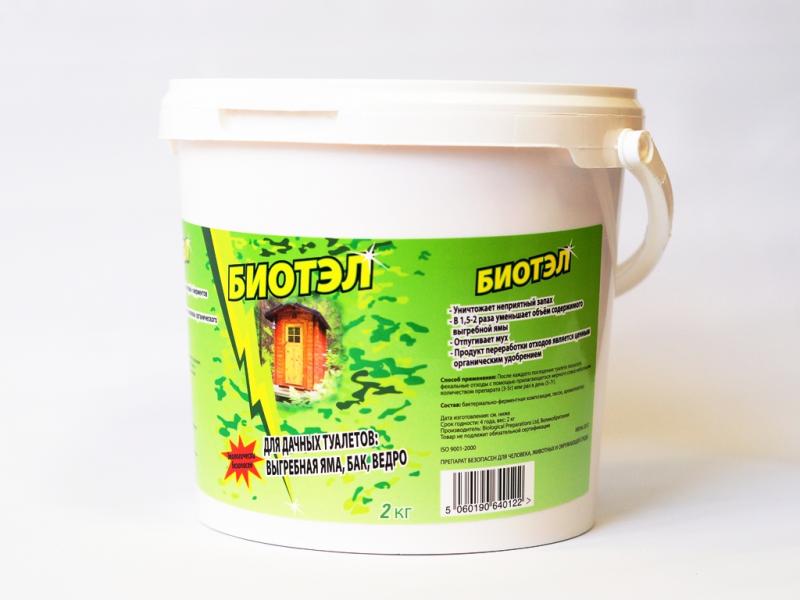 Препарат для дачных туалетов «Биотэл» — это биологическое ферментное средство в сухом виде. Предназначен для переработки фекальных отходов и устранения неприятного запаха в дачном туалете любого типа (выгребная яма, ведро, бак). Дозы достаточно для переработки 1 кубического метра отходов.