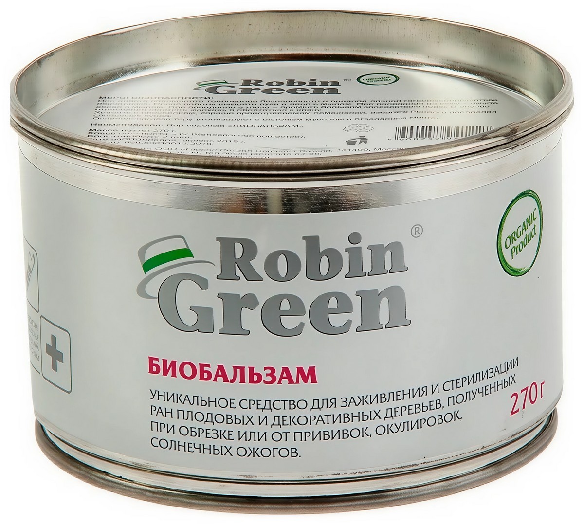 Биобальзам Robin Green - уникальный по своим свойствам препарат для стерилизации и заживления ран и повреждений на декоративных и плодовых деревьях. Очень хорошо заживляет раны, полученные после обрезки, от прививок, окулировок и солнечных ожогов. Средство изготовляется только из натуральных ингредиентов: очищенный парафин, смола хвойных пород, терпентинное масло, пигментные частицы.