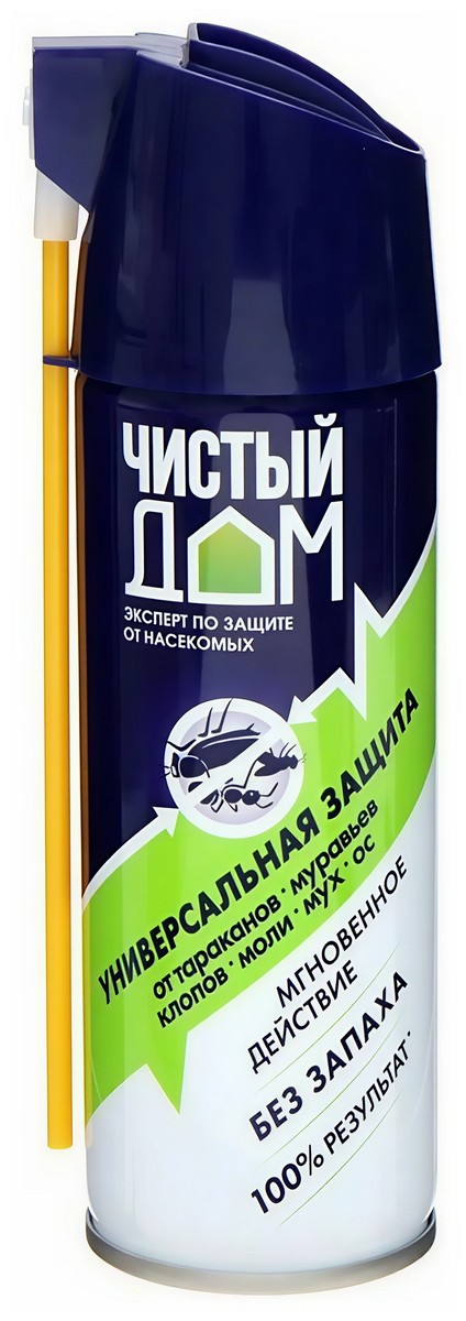 Эффективное и экономичное средство мгновенного действия для уничтожения всех видов летающих и ползающих насекомых: мухи, комары, мошки, моль, кожееды, осы, тараканы, постельные клопы, муравьи. Препарат не имеет запаха.
