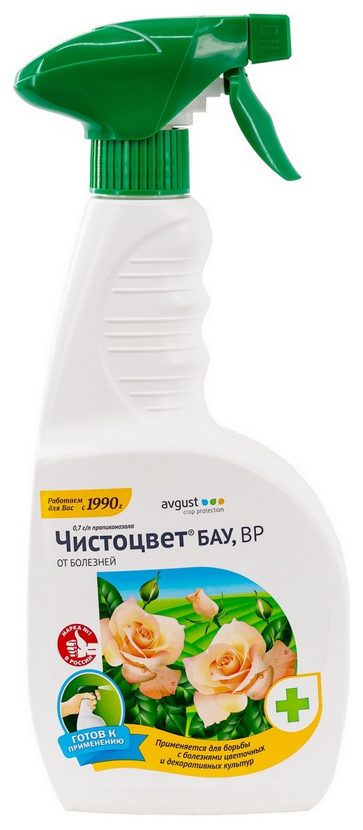 Препарат «Чистоцвет БАУ» относится к системным фунгицидам нового поколения. Его основным действующим веществом является пропиконазол, позволяющий быстро справиться с болезнями даже в наиболее неблагоприятные сезоны. «Чистоцвет БАУ» эффективно подавляет грибные заболевания растений: ржавчину, черную пятнистость, мучнистую росу. Препарат имеет защитные, лечебные и иммунизирующие свойства, не смывается дождем, устойчив к неблагоприятным погодным условиям. Серия «БАУ» – уже готовые к применению препараты. Они выпускаются в оптимальных по объему (700 мл) флаконах-опрыскивателях, для использования которых достаточно просто повернуть колпачок распылителя.