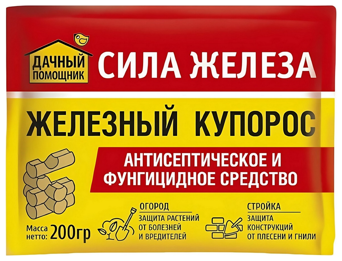 «Железный купорос» - эффективное средство борьбы с грибковыми заболеваниями растений и богатый источник железа. Используется также для обработки теплиц, погребов, заборов, курятников, коровников и др. конструкции из древесины и металла от грибков и плесени. Полезные свойства: подавляет активность мхов, уничтожает лишайники; блокирует развитие и прорастание грибных спор, плесени; противостоит пятнистости, ржавчине, гнили, избавляет плодовые от парши, монилиоза; защищает виноград от некроза, бактериального рака, антракноза, милдью и других специфических болезней культуры; восполняет недостаток железа у растений (при условии четкого следования инструкциям).