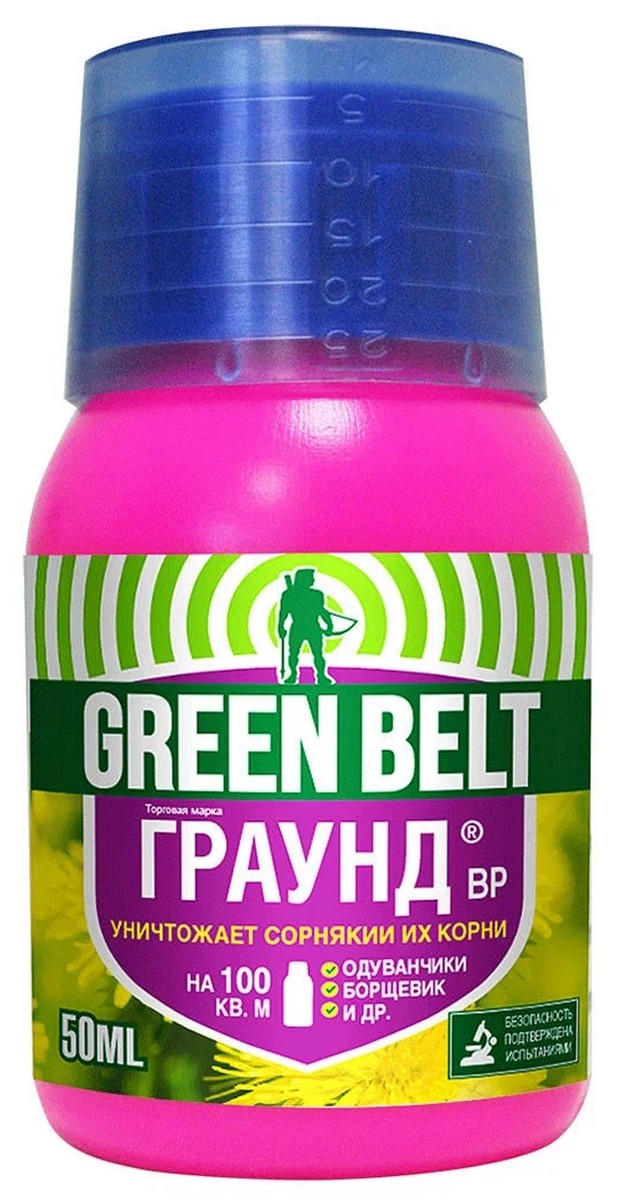 Граунд - средство от сорняков сплошного действия. Гербицид обще истребляющего действия для борьбы с вредной растительностью. Уничтожает более 150 видов сорняков, однолетние и многолетние, в том числе трудноискоренимые. Эффективно борется с такими стойкими сорными растениями как осот, борщевик, пырей, одуванчик, амброзия, хвощ. Полностью уничтожает сорняки, включая их надземные и подземные части. Действует по зеленым растущим сорнякам. Попадая на растение, проникает в зеленые листья и стебли сорняков и разносится по всему растению, включая корневую систему. Препарат блокирует синтез веществ в клетках растения, и оно гибнет. Препаратом Граунд нужно опрыскивать листья растений в сухую безветренную погоду. В случае ветра препарат может попасть на культурные растения, а если вскоре пойдут дожди, то эффективность значительно снизится и гибель растения может значительно затянуться.