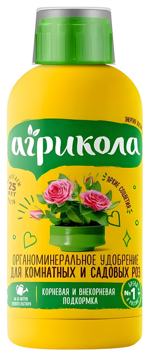 Агрикола предназначена для всех видов комнатных и садовых роз. Способствует активному росту, интенсивному цветению, а также приданию цветам яркой окраски. Содержит гуминовые кислоты, макро- и микроэлементы.