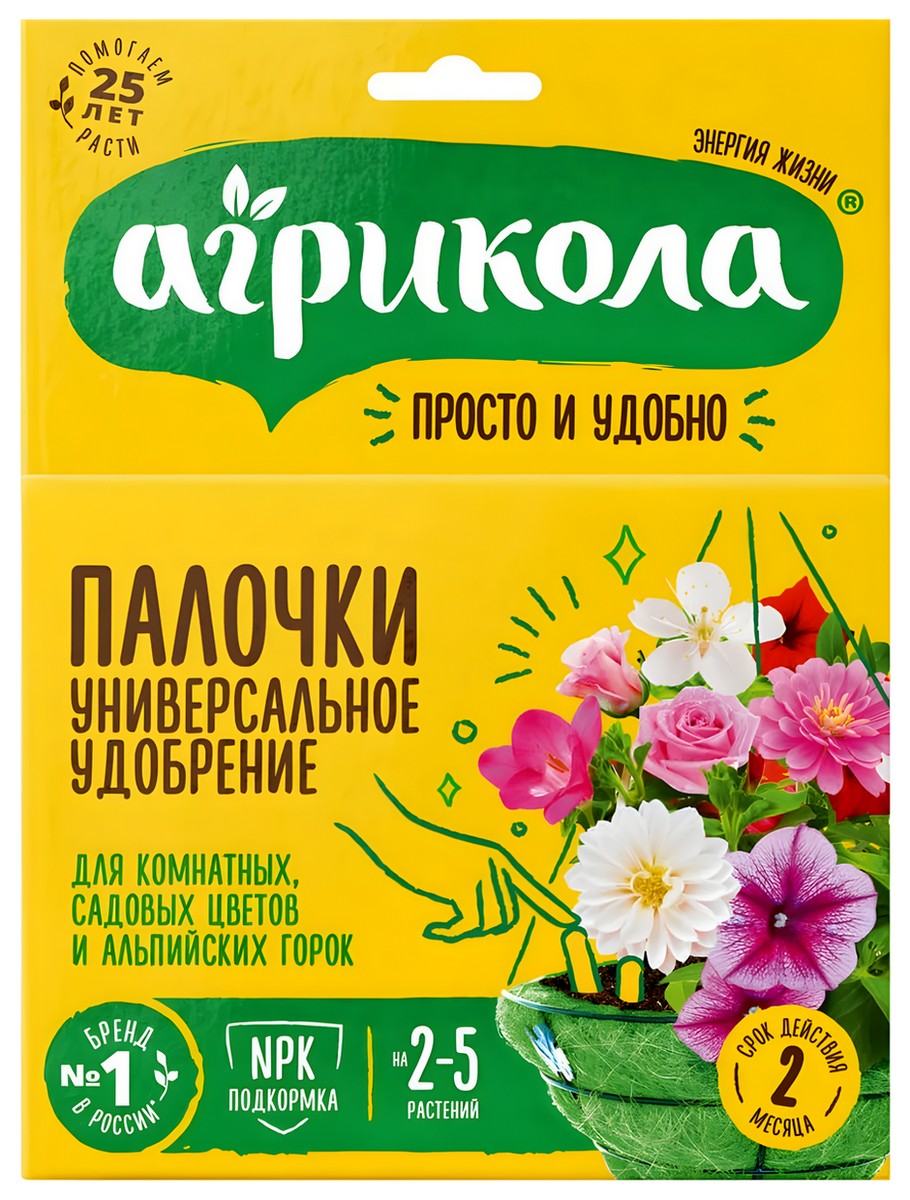 Агрикола Палочки универсальное удобрение для комнатных и садовых цветов и альпийских горок — это комплексное, бесхлорное, высокоэффективное удобрение длительного действия. Оно содержит сбалансированное количество макро- и микроэлементов, предназначено для подкормки комнатных и садовых цветов, альпийских горок. Элементы питания в удобрении находятся в форме, обеспечивающей стабильное питание растений в течение двух месяцев. Удобрение стимулирует рост и укрепляет иммунитет растений. Перед применением рекомендовано взрыхлить верхний слой почвы. Усваиваются без риска передозировки.