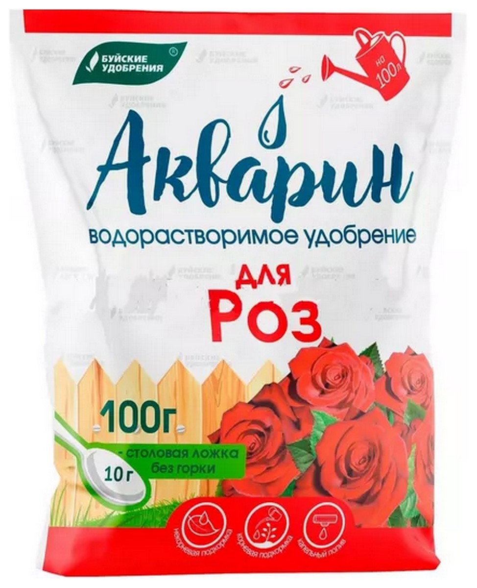 "Акварин" для роз - водорастворимое удобрение, в состав которого входит азот, фосфор, калий, магний, сера и микроэлементы – железо, цинк, марганец, медь в хелатной форме, а бор и молибден – в минеральной. Благодаря кислой реакции (рН) удобрения, оно легко растворяется в холодной воде и более эффективно усваивается корневой системой или листовой поверхностью растений.