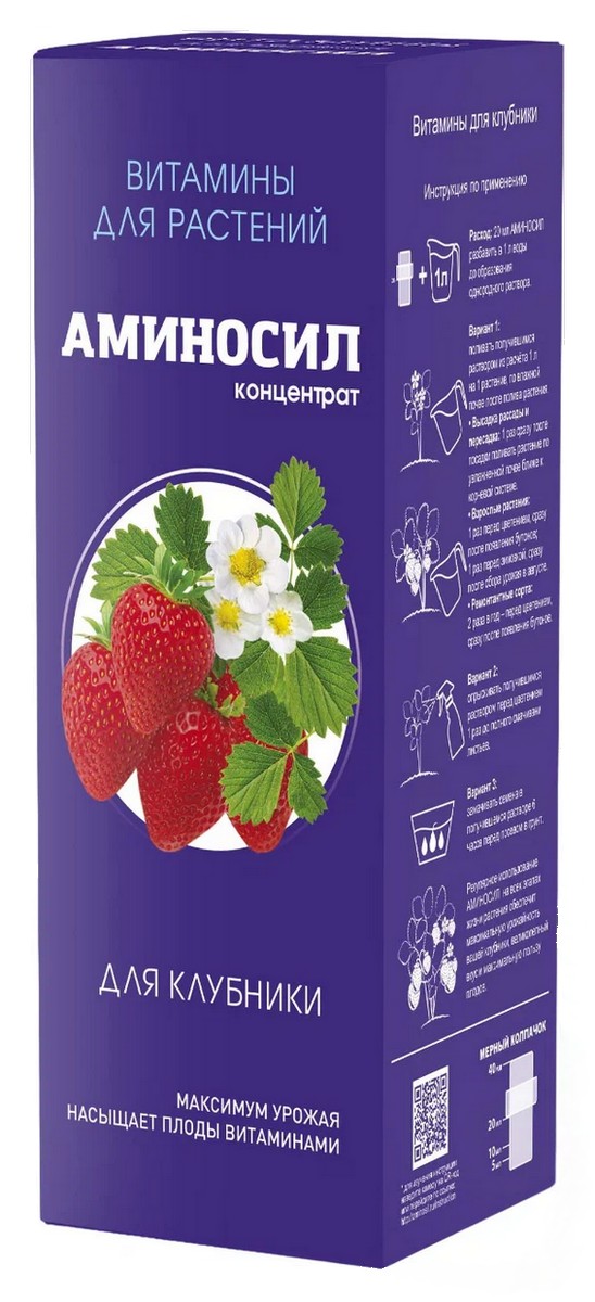 Аминосил - уникальный комплекс витаминов и аминокислот для растений всех видов, разработанный специально для декоративных и плодовых культур. Препарат создан на базе 100% органических компонентов по ЭКО технологиям, благодаря которым Аминосил содержит превосходящее все аналоги количество витаминов и аминокислот, необходимых любому растению для реализации своих лучших качеств в полную силу. В состав АМИНОСИЛ входят макро и микроэлементы, а также более 40 важнейших аминокислот, в специальной хелатной, легко усваиваемой форме. Аминосил для клубники— это комплексное жидкое органическое удобрение, которое идеально подходит для ухода и питания клубники (садовой земляники) всех сортов.