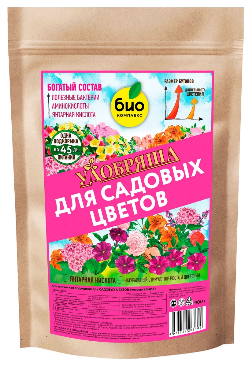 БИО-комплекс Удобрение органическое для цветов ТМ Удобряша, 900 г