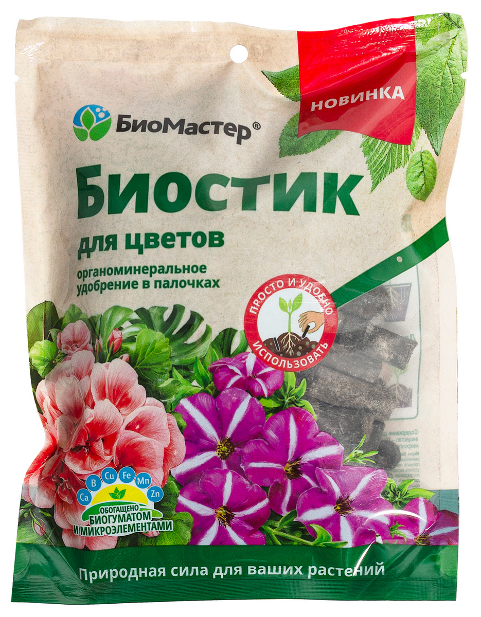 Удобрение Биостик содержит легкоусваиваемые органические и неорганические вещества в оптимальных пропорциях для растений. Биостимулятор в составе удобрения повышает устойчивость растений к болезням и стрессовым факторам. Палочки растворяются постепенно и высвобождают при этом необходимое количество питательных элементов. В результате - одной подкормки хватает на 6 недель. Удобрение обеспечивает гармоничный рост, придает листьям сочные зеленые оттенки, способствует образованию большого количества соцветий и продолжительному цветению.
