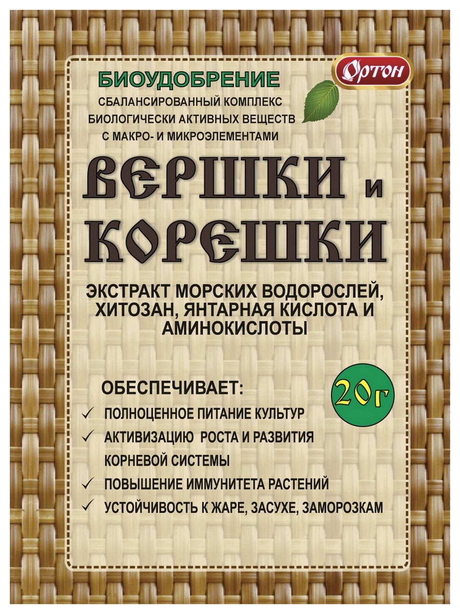 ----Биоудобрение Вершки и Корешки рассада, 20 г Ортон
