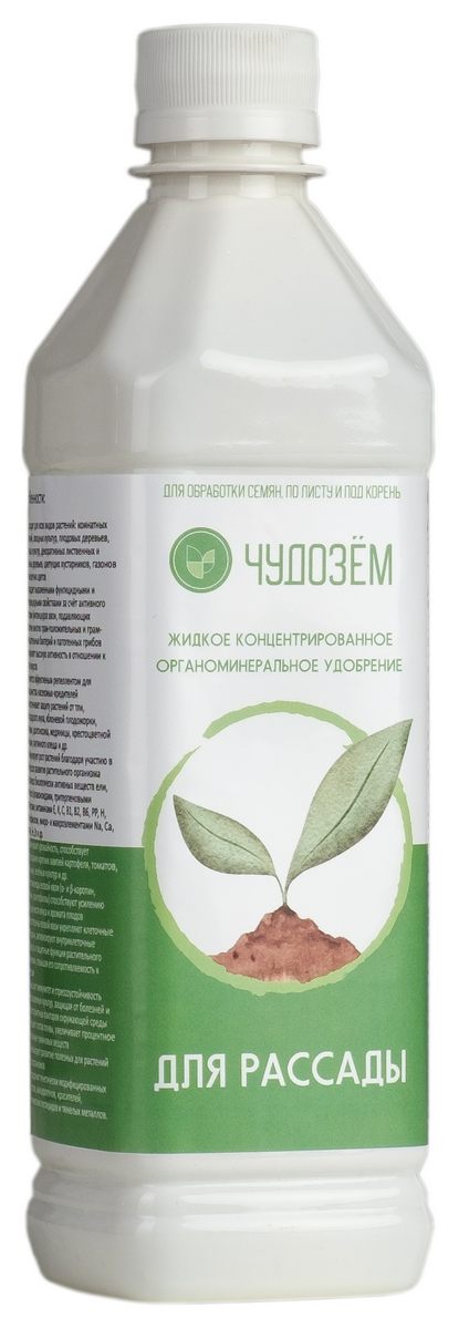 Чудозем для рассады - жидкое концентрированное органоминеральное удобрение обеспечивающим полноценное сбалансированное питание молодых растений азотом, калием и фосфором в специально подобранном соотношении с участием макро· и микроэлементов как при внесении в почву, так и при внекорневой обработке. Микроэлементы дополняют действие основных минеральных компонентов удобрения и способны оказывать уравновешивающее действие при нарушениях оптимального соотношения питательных веществ. Способствует быстрой приживаемости и укоренению рассады, черенков, саженцев, укрепляет корневую систему. Помогает саженцам лучше преодолевать период адаптации при пересадке и высадке, сокращает задержки роста рассады после пикировки. Обеспечивает быстрый рост, развитие и гармоничное формирование всех органов рассады. Подходит для всех видов овощных, кормовых, плодово-ягодных, декоративно-лиственных культур.