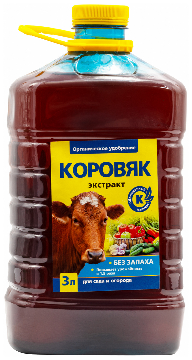 Коровяк – это высокоэффективное концентрированное удобрение из экстракта коровьего навоза для подкормки овощных, плодово-ягодных и декоративных культур. Сокращает сроки созревания до 14 дней, мобилизирует иммунную систему растений, увеличивает сроки хранения овощных культур, является удобрением и стимулятором роста одновременно.