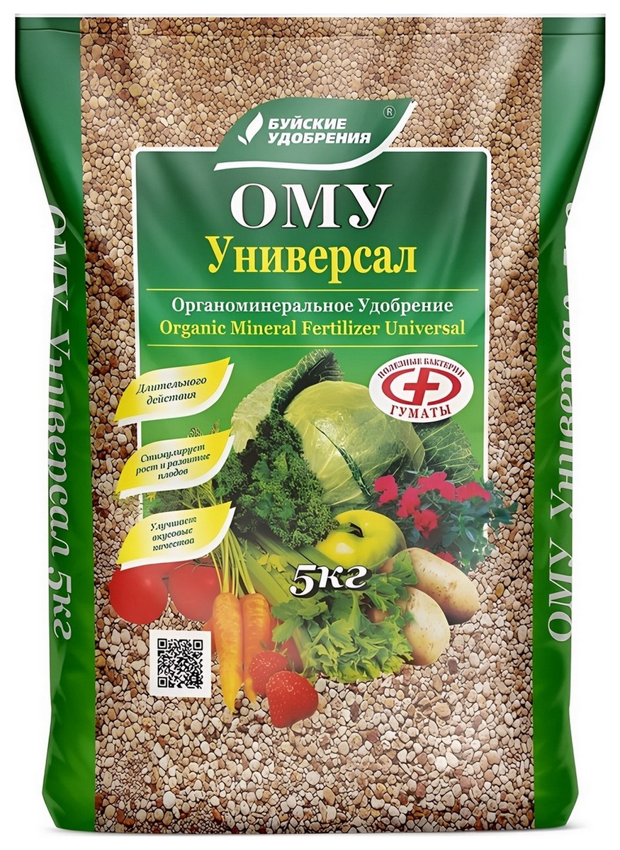 ОМУ - комплексное гранулированное удобрение пролонгированного действия, производится на основе низинного торфа, в состав которого входят гуминовые вещества, макро- и микроэлементы, и полезные почвенные бактерии. Удобрение предназначено для внесения в почву в сухом виде при осенней посадке лука, чеснока и других озимых культур. Медленно действующий азот не даст активного роста культуре в осенний период, но обеспечит развитие корневой системы и благоприятную перезимовку. Органоминеральная гранула – это микрокладовая питательных элементов для растений. За счет этого коэффициент использования питательных элементов, содержащихся в ОМУ, выше по сравнению с минеральными удобрениями, где усваивается максимум 25–30% питательных веществ, в то время как процент усвоения ОМУ составляет 80-90%. Оптимальное соотношение элементов питания предохраняет от избыточного накопления нитратов в продуктах; повышает морозоустойчивость и сопротивляемость растений болезням. Отличное стартовое удобрением для многих культур.