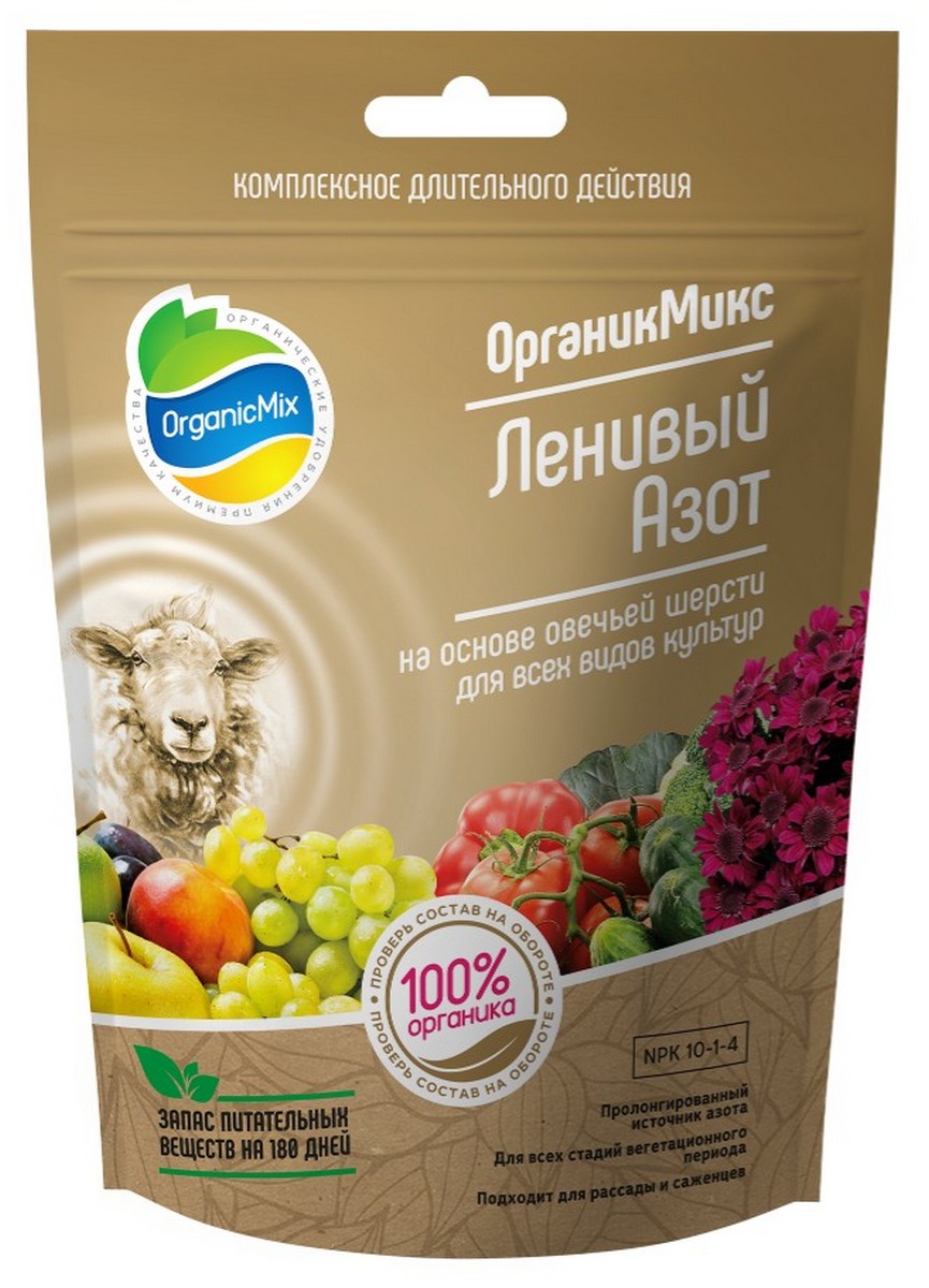 Ленивый Азот — это полностью натуральное органическое гранулированное удобрение на основе овечьей шерсти (не менее 50%). Высокое содержание органического азота (10%) и пролонгированное высвобождение питательных веществ обеспечат Ваши растения энергией на протяжении всего вегетационного периода для формирования мощного стебля, пышной листвы, ярких бутонов и соцветий. Волокнистые материалы животного происхождения, в том числе шерсть являются белковыми веществами. Их молекулы построены из длинных цепей аминокислот, связанных между собой амидными связями. Аминокислоты принимают активное участие в процессе метаболизма растений. По сути, они представляют собой элементы или “кирпичики”, из которых состоит белок для строительства растительных клеток. Значение pH около 8.5 противодействует тенденции к закислению почвы. Подходит практически для всех овощей, фруктов, декоративных и комнатных растений.