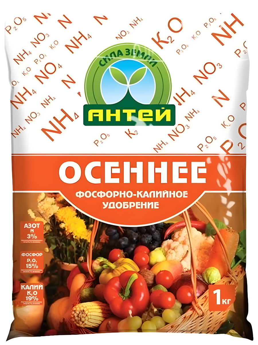 Удобрение Осеннее — это высококачественное минеральное удобрение, разработанное специально для осеннего внесения. Оно предназначено для использования на различных культурах, включая плодово-ягодные, овощные, луковичные и клубнелуковичные цветы, а также газоны и клумбы. Основное назначение удобрения - укрепление иммунитета растений, восстановление почвы и стимуляция роста. Благодаря содержанию питательных веществ, таких как азот (3,0%), фосфор (15,0%) и калий (19,0%), удобрение обеспечивает растения всеми необходимыми элементами для здорового роста и развития. Удобрение подходит для использования на разных стадиях роста растений, включая подзимние посевы чеснока, зеленые культуры и посадки земляники.