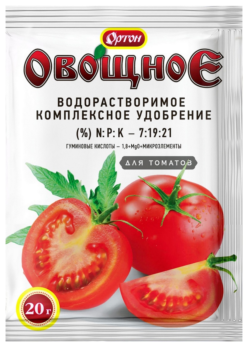 Комплексное водорастворимое удобрение с гуматом предназначено для подкормки томата в периоды усиленного роста и интенсивного плодоношения. Обеспечивает растения повышенными дозами фосфора, к которому так требователен томат, особенно при недостатке тепла, а также калием, улучшающим качество плодов. Гумат способствует лучшему усвоению минерального питания.