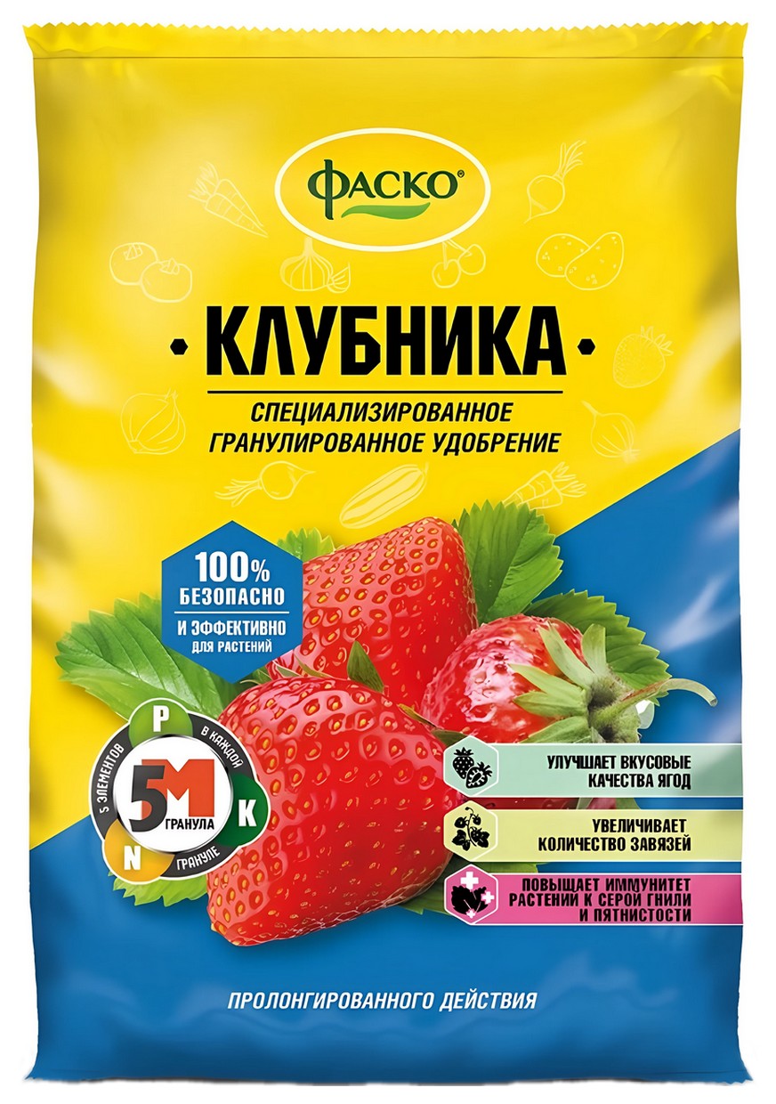 Удобрение сухое Фаско 5М минеральное для Клубники гранулированное – минеральное удобрение комплексного действия. Содержит необходимый сбалансированный набор питательных веществ, который благоприятно влияет на рост и развитие растений, укрепляет иммунитет. Сформировано в гранулу, что ускоряет процесс внесения в почву. В каждой грануле содержится 5 питательных макро и микроэлементов. Что обеспечивает полноценное питание растений.