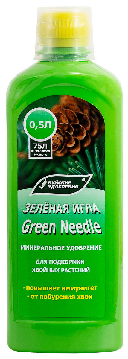 Комплексное минеральное удобрение "Зеленая игла" Буйского химического завода разработано специально с учетом потребностей хвойных растений в элементах питания. Используется как, средство для устранения и профилактики побурения хвои, вызванной недостатком магния.