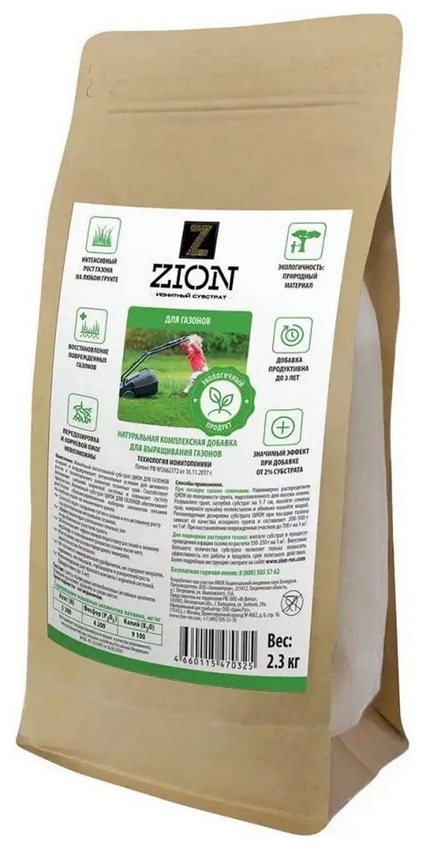 Ионитный субстрат ZION ДЛЯ ГАЗОНОВ создает и поддерживает оптимальные условия для активного роста и полноценного развития газонных трав. Способствует развитию сильной корневой системы и повышает густоту травостоя. Ионитный субстрат ZION ДЛЯ ГАЗОНОВ обеспечивает растения сбалансированным набором элементов питания на любом этапе их жизненного цикла. В течение периода полезного действия ZION никаких дополнительных подкормок растению не потребуется. Изготовлен на основе природного минерала, экологически безопасен. Не содержит нитратов, гормонов, пестицидов, гербицидов и ускорителей роста.