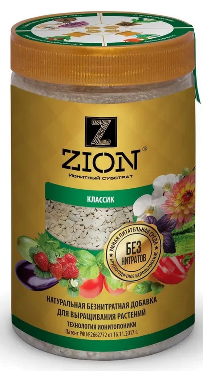 Ионитный питательный субстрат ЦИОН КЛАССИК обеспечивает интенсивный рост растений, развитие сильной корневой системы, повышает урожайность зеленых, овощных и плодово-ягодных культур, сокращает сроки созревания. Способствует раннему и длительному цветению садовых цветов. ЦИОН КЛАССИК может использоваться как самостоятельно, так и в виде малых корректирующих добавок к любым основам (обеднённые и деградированные грунты, пески, перлит, вермикулит, разбалансированная почва любого состава и др.). Идеально подходит для выращивания рассады. Содержит в 60 раз больше питательных элементов, чем самый плодородный грунт. Экологически безопасен. Не содержит гормонов и ускорителей роста. Способствует адаптации и приживаемости растений после пересадки. Рекомендован для прямого контакта с корневой системой.
