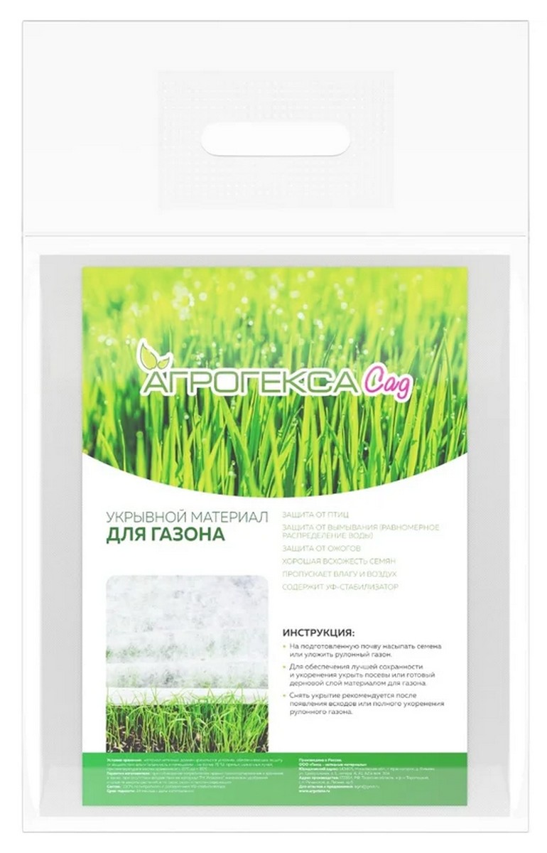 Агротекс Укрытие для газона защищает от выветривания, вымывания, ожогов и птиц. Обеспечивает хорошую всхожесть семян и приживаемость рулонного газона, благодаря созданию оптимальных условий и равномерному распределению воды. По мере роста растения легко поднимают нетканое полотно, не повреждая при этом стебли. По мере роста растения легко поднимают нетканое полотно, не повреждая при этом стебли. Нетканый материал применяется для укрытия семян газона после посева.